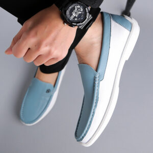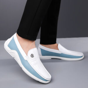 Crafted from genuine leather, these one-of-a-kind loafers feature a unique two-tone design that adds class and sophistication to your look. Enjoy the comfort of a cushioned footbed and a durable rubber sole that provides reliable grip all day long.