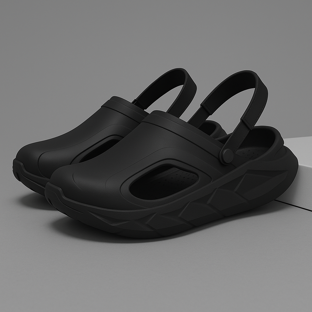 Built from ultra-lightweight injected EVA, this design wraps the foot in structured support while maximizing breathability through precision-cut side vents. The cushioned platform sole adds shock-absorbing lift for long days on your feet, whether indoors or out.