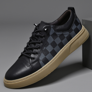Crafted from genuine Italian leather with a checkered side panel, these sneakers deliver all-day comfort through a cushioned sole that supports every step. Designed for active city days, they move easily from streets to downtime.
