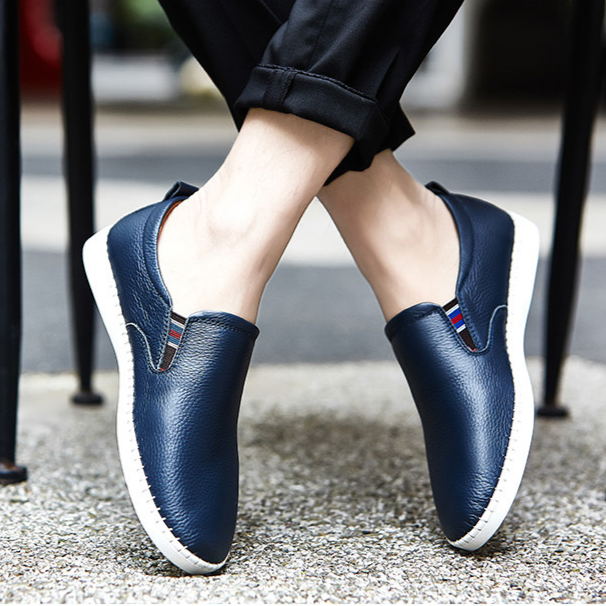 Crafted from genuine leather with a textured finish, these slip-on sneakers offer breathable comfort that lasts through long days while maintaining a polished look. The flexible rubber sole ensures a firm grip, making them your go-to from quick coffee runs to leisurely weekend strolls.