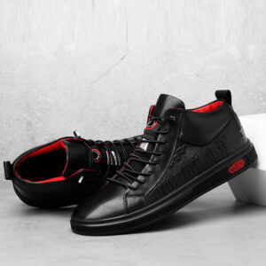 Step into luxury with these high-top sneakers that blend sleek, genuine leather and striking red accents for a look that’s as stylish as it is street-smart. The cushioned sole offers unparalleled comfort, making every step a pleasure.