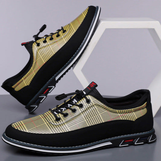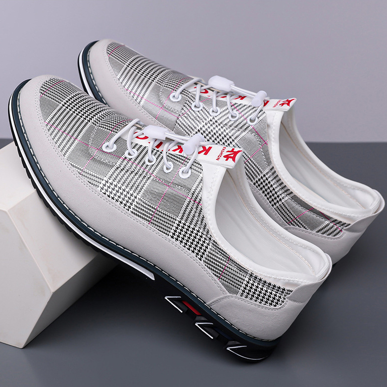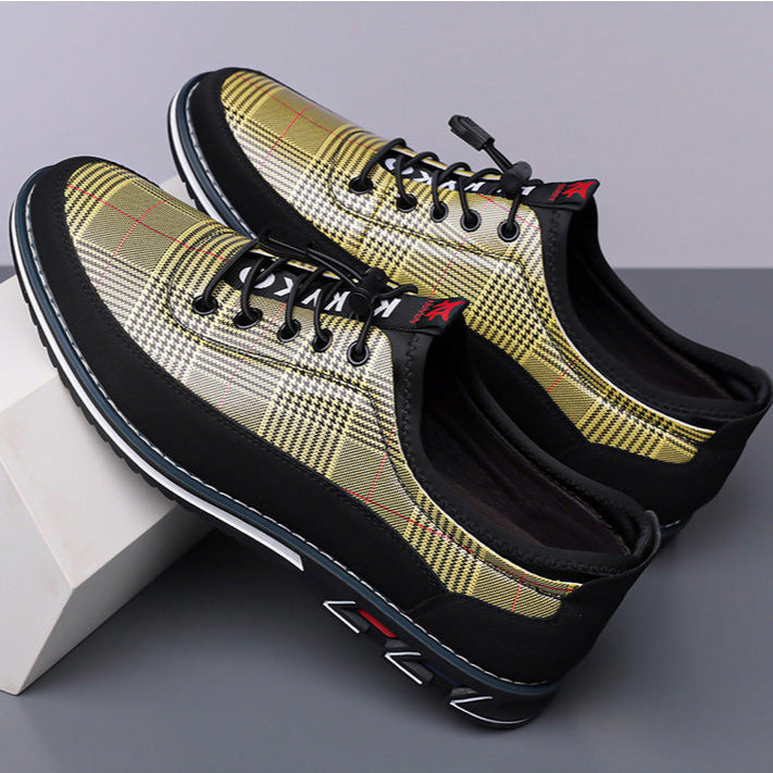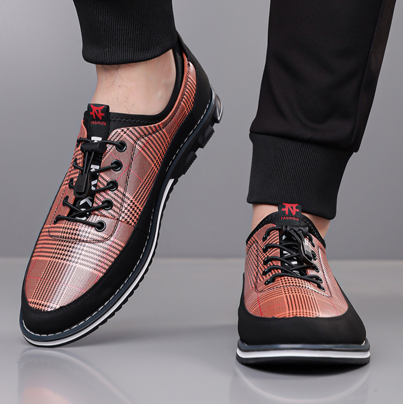 Crafted in premium leather and finished with plaid detailing, these sneakers supports your natural stride with sleek comfort. Its waterproof design keeps you covered from sidewalks to social scenes, making it the go-to choice for both casual and semi-formal wear.