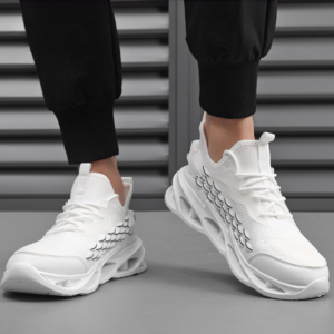 Inspired by the effortless motion of flight, these sneakers are built with a featherlight knit upper and layered scale detailing that mirrors the precision and lightness of a bird in flight. The sculpted sole compresses on impact and springs forward with momentum, propelling you with every stride like wings catching lift.