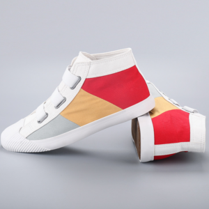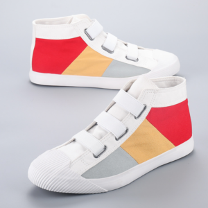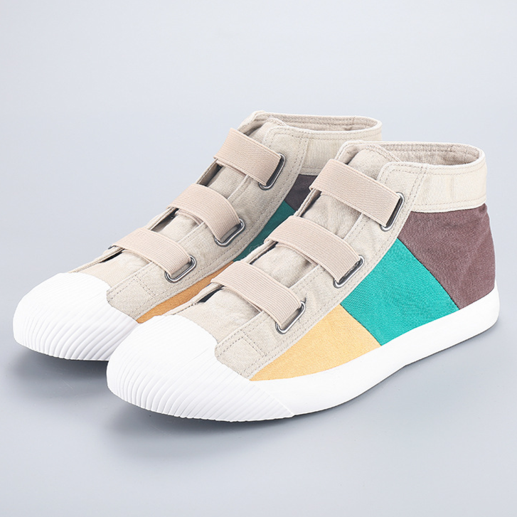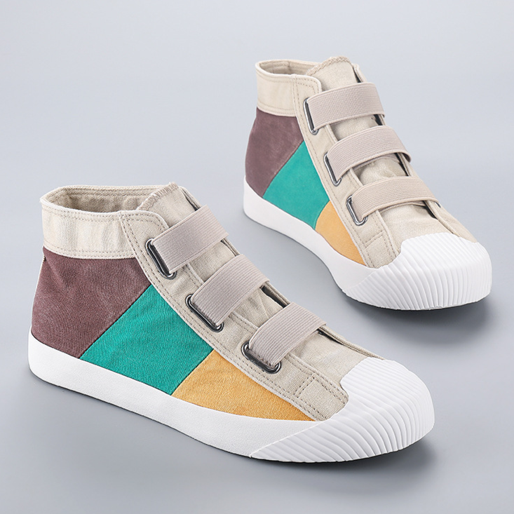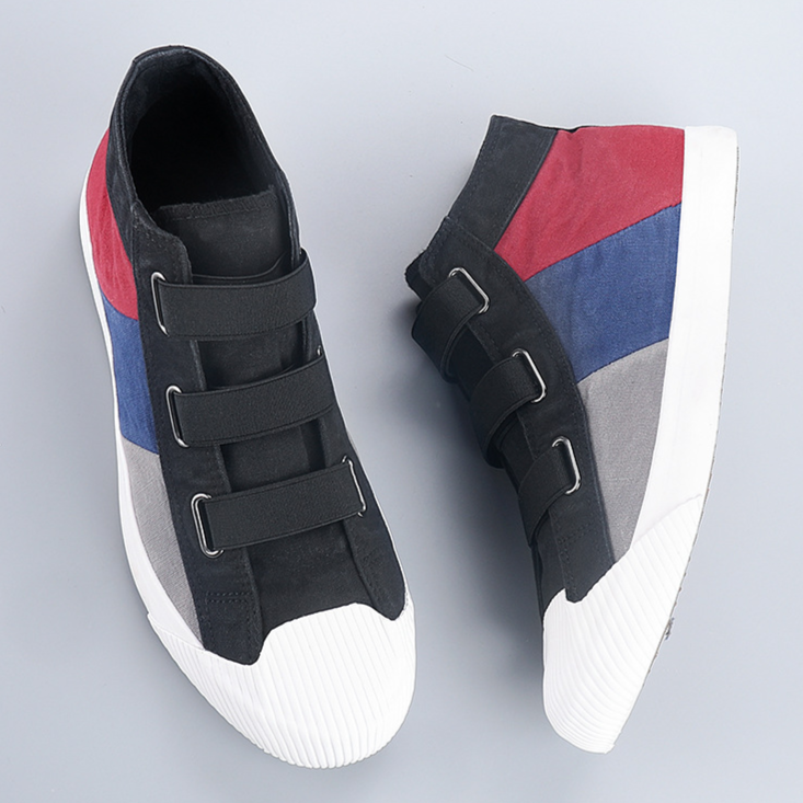 These sneakers combine bold, colorblocked panels with a structured retro look, drawing from the graphic clarity of Bauhaus-era design. Crafted from durable woven canvas and finished with triple velcro straps, they offer easy wear and standout style—no matter what you pair them with.