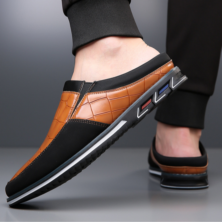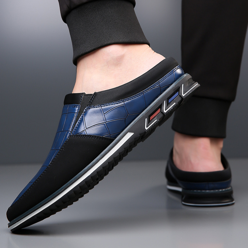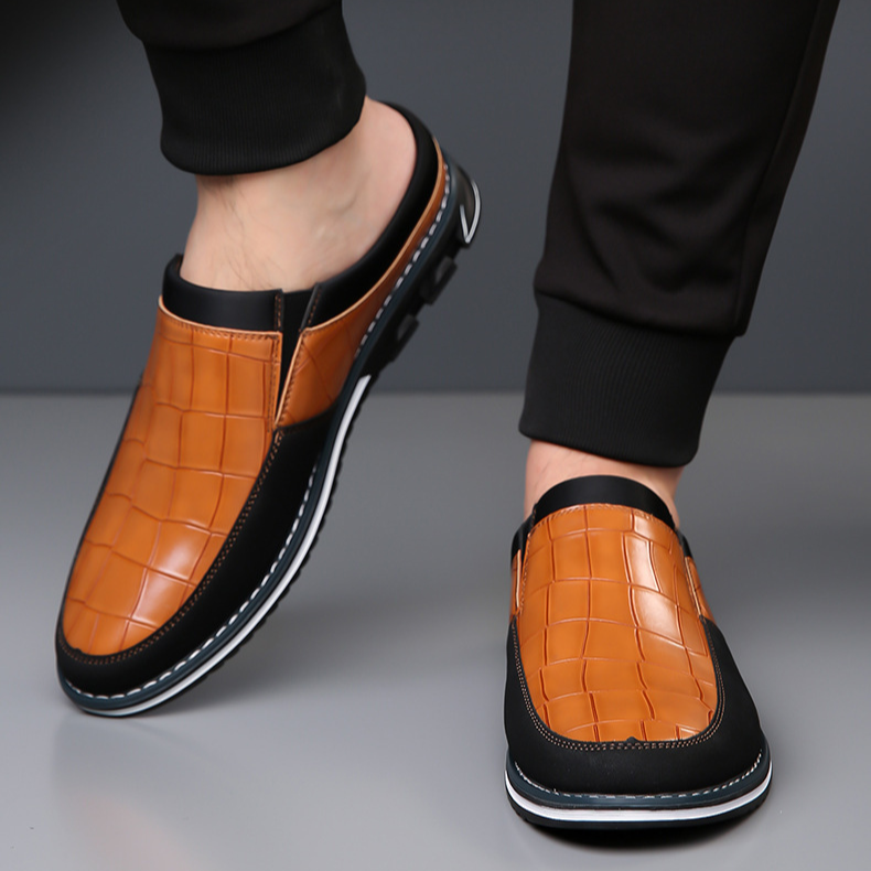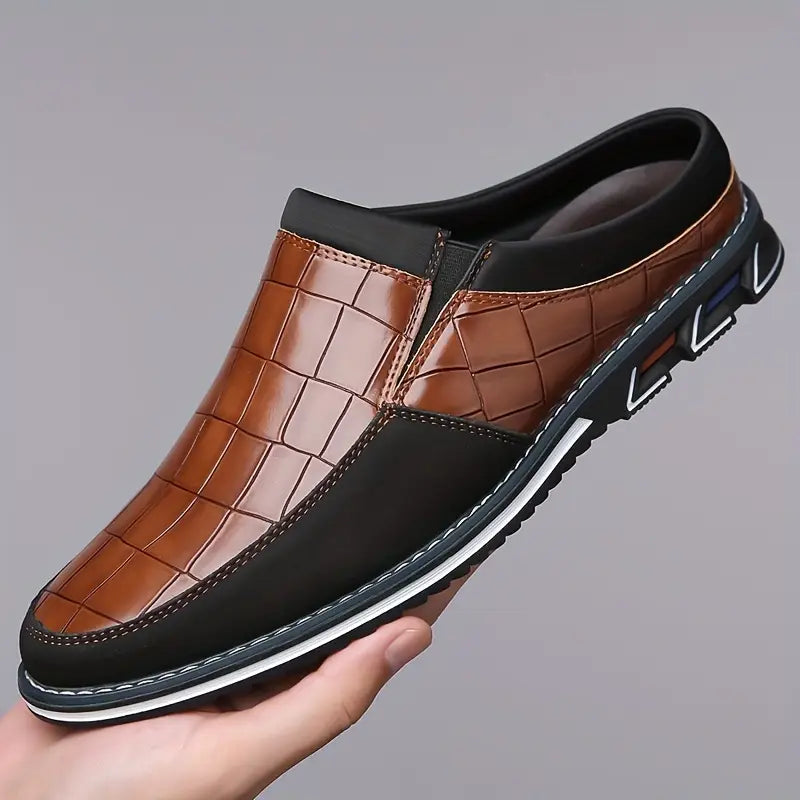 Crafted from genuine embossed leather, these mules bring a sculpted grid design together with sleek contrasting trim for a polished finish. The soft interior lining and lightweight sole deliver flexible movement that cradles you in comfort.