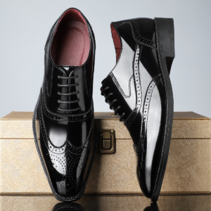 Crafted from high-shine patent leather, these wingtip shoes feature intricate brogue detailing for timeless sophistication. The cushioned insole and durable sole deliver all-day comfort, making them the perfect blend of style and practicality for formal or semi-formal settings.