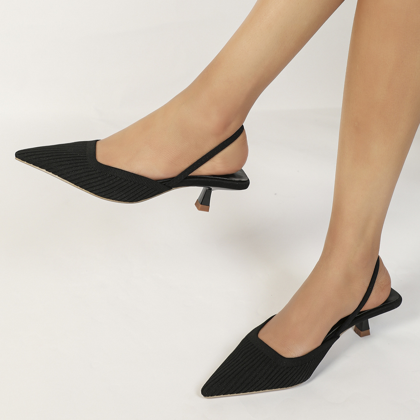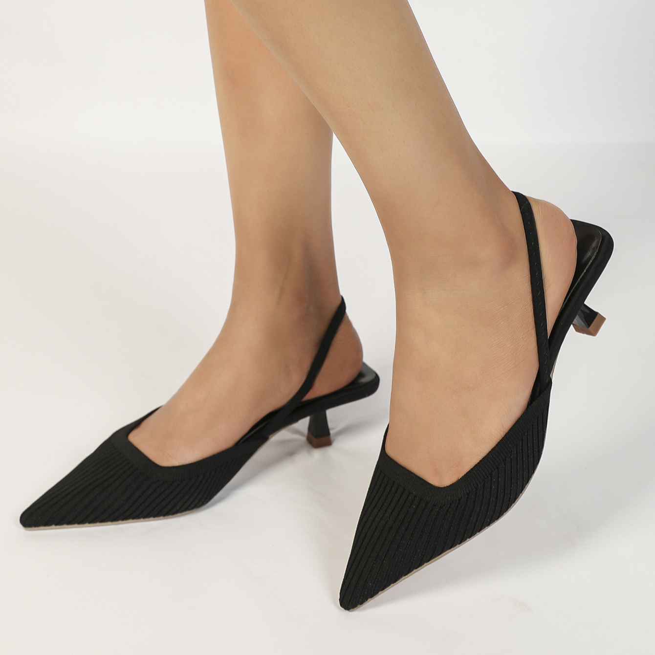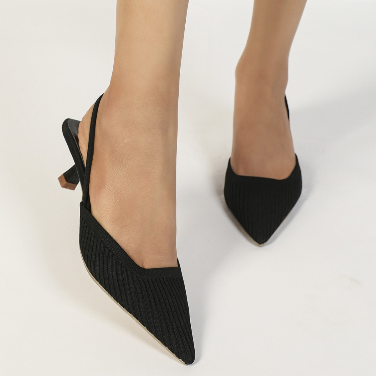 Balancing style and comfort, these slingback heels feature a pointed toe and slingback strap that create a sleek silhouette, while the soft knit upper and low heel ensure lasting comfort, even through long days on your feet.