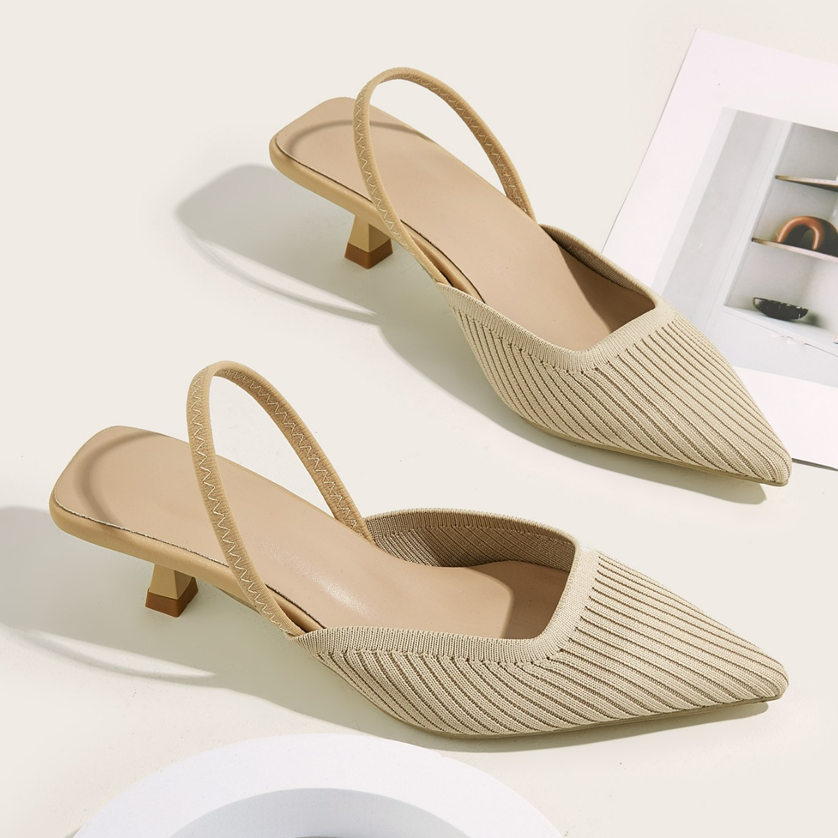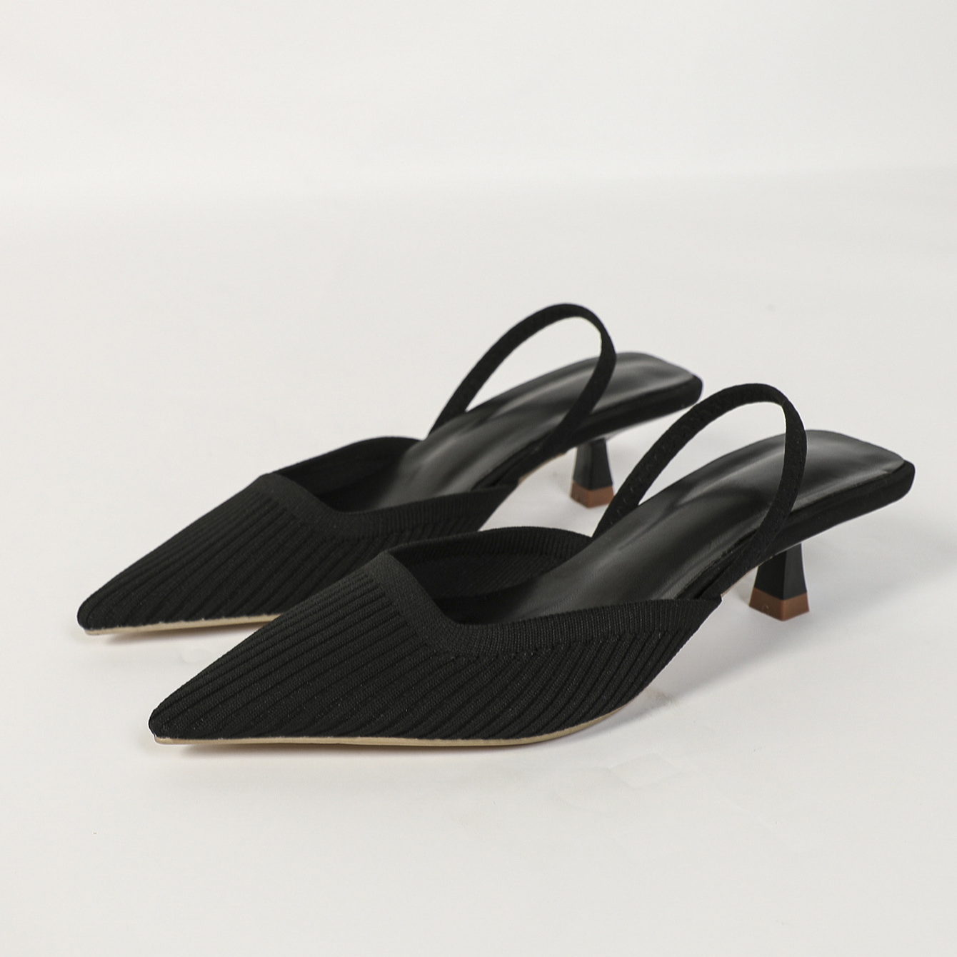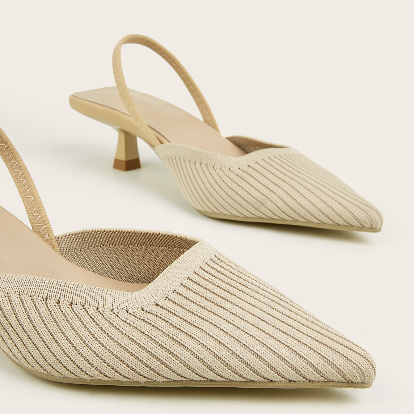 Balancing style and comfort, these slingback heels feature a pointed toe and slingback strap that create a sleek silhouette, while the soft knit upper and low heel ensure lasting comfort, even through long days on your feet.