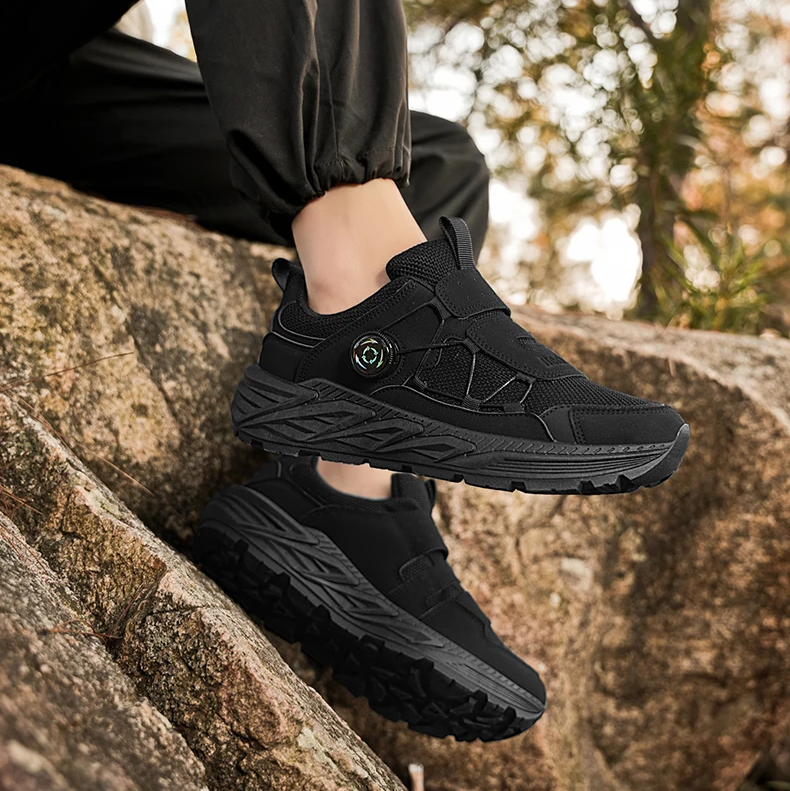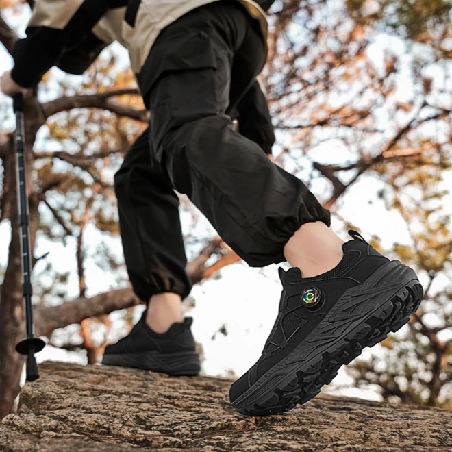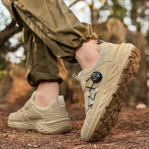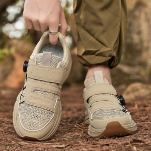 These sneakers are built for action whether you’re hitting trails or exploring a city. The real game-changer? A built-in twist-lock dial system that replaces traditional laces, giving you a custom fit in seconds. Add in a rugged sole for traction and breathable mesh for airflow, and you’ve got a pair that’s all grip, no slip, and zero fuss.