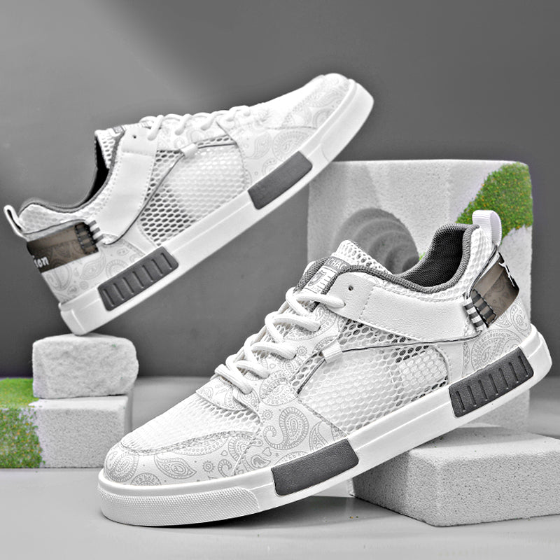Breathable mesh meets smooth leather detailing for a sneaker that blends modern style with unmatched comfort. A cushioned sole and contrast accents bring a bold edge, making every step feel as good as it looks.