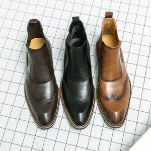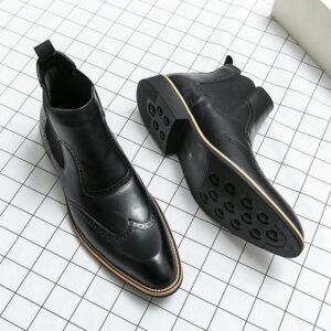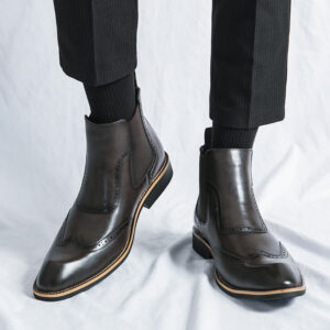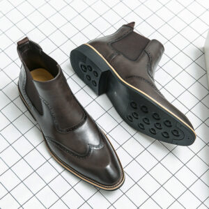 Step into sophistication with these sleek Chelsea boots, crafted from genuine leather and embellished with sophisticated brogue detailing. The rounded toe design ensures a polished look without sacrificing comfort, perfect for any stylish setting.