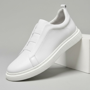 A maverick take on a classic sneaker features a smooth, genuine Italian leather upper with subtle stitching details and signature loop lacing for a refined look.
