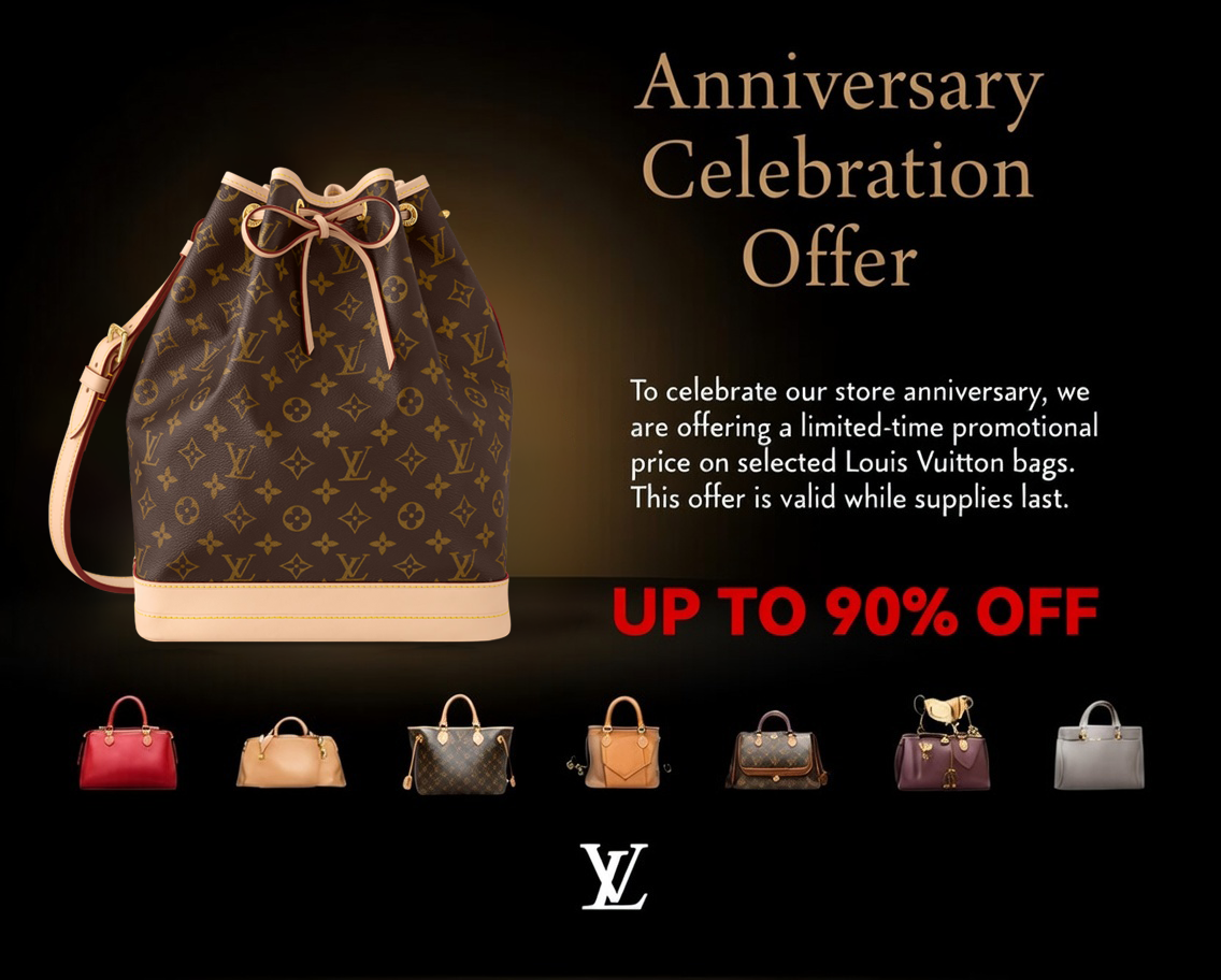 To celebrate our store anniversary, we are offering a limited-time promotional price on selected Louis Vuitton bags.