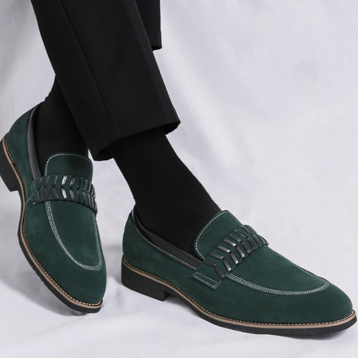 Crafted from premium suede with hand-finished braided leather details, these loafers transform any outfit from ordinary to exceptional. The modernized classic design delivers effortless sophistication, making them an easy choice for boardroom meetings and special occassions.