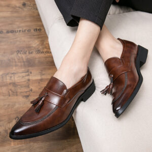 Slip into polished luxury with these loafers, crafted from genuine leather and boasting a sleek, minimalistic design accented by elegant tassels. Their refined low-rise silhouette ensures a sophisticated look, perfect for both office and evening wear.
