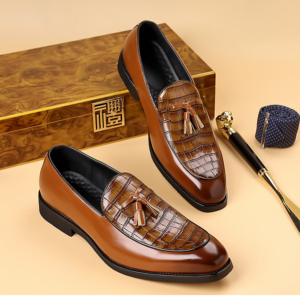 Polished, sleek, confident—these are the loafers that command attention with every stride. Crafted from genuine leather with a crocodile-textured vamp and classic tassel finish, they deliver a sharp, dress-ready look that stands out in any setting.