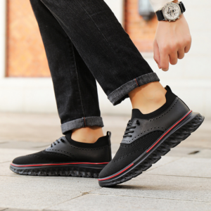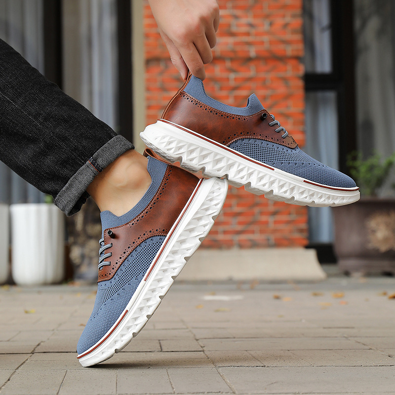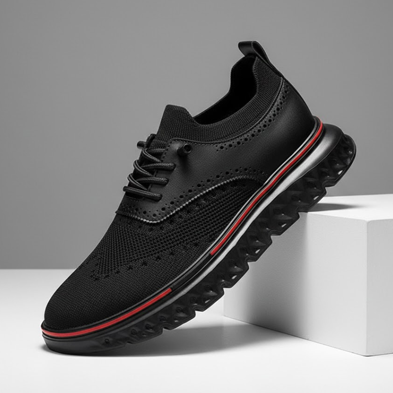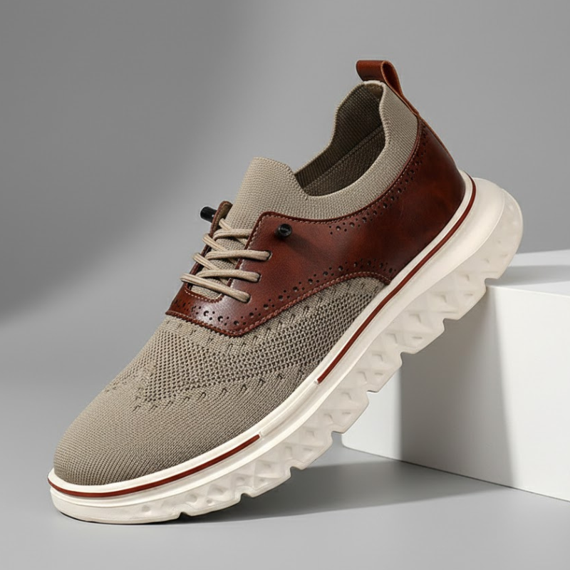 Crafted with our signature breathable mesh and genuine leather paneling, these sneakers blend flexible comfort with a polished edge. Finished with brogue detailing and a cushioned sole, they’re tailored for smooth movement that lasts all day.