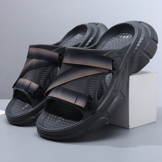 Merging the cushioned ease of Crocs™ with the rugged design of Teva®-style outdoor sandals, these slip-ons redefine off-duty performance. Thick sculpted soles and layered cross-straps give them an edge that feels as street-ready as it is trail-inspired — perfect for those who blur the line between lounge and motion.
