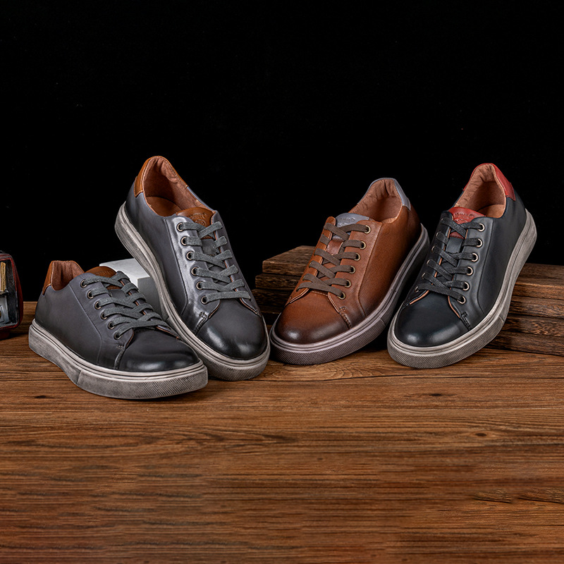 Put a little personality into your ensemble with the rugged charm of these distressed leather sneakers. Burnished edges, a smoky patina, and a broken-in sole bring raw, intentional edge to a silhouette that stays crisp and composed. Pair it with a basic white shirt for contrast that hits just right.