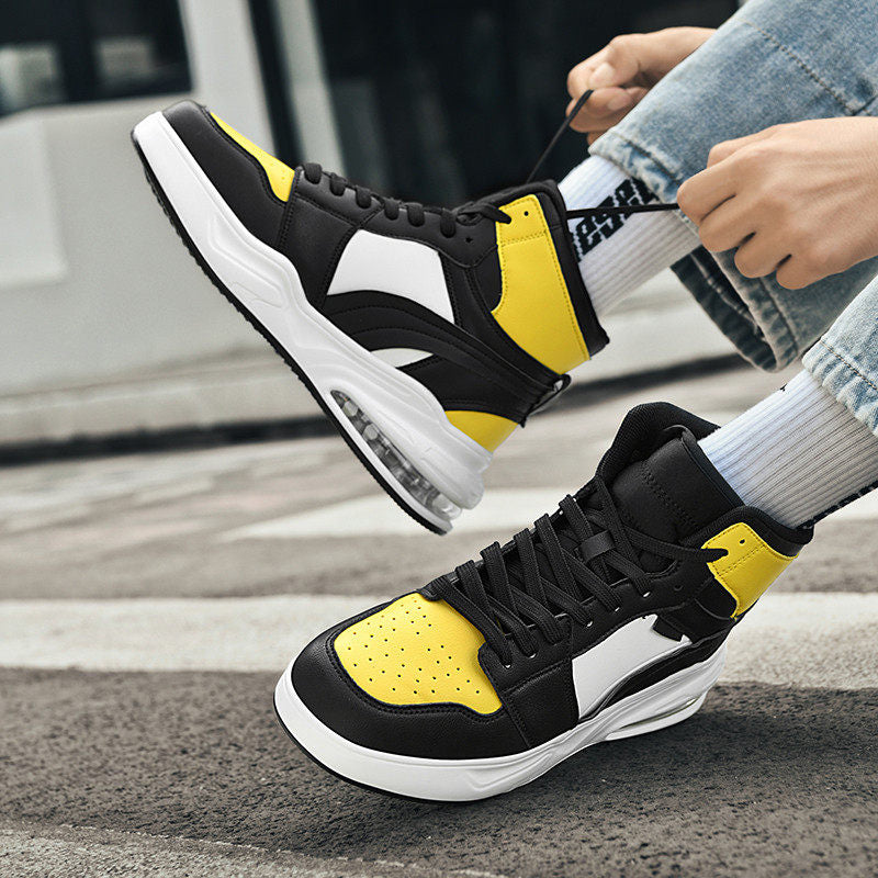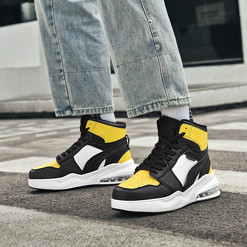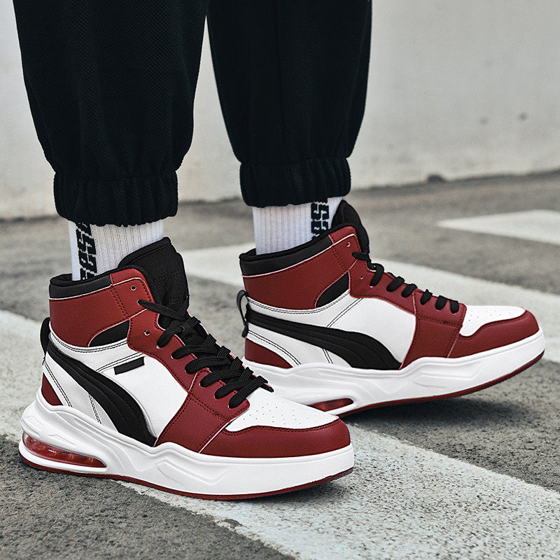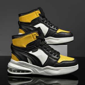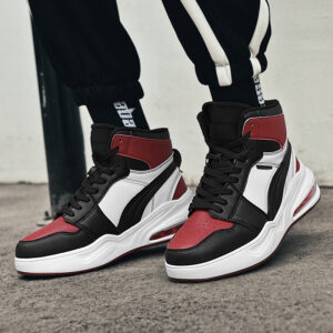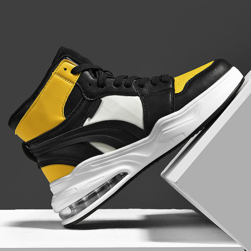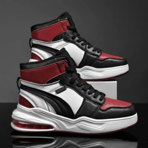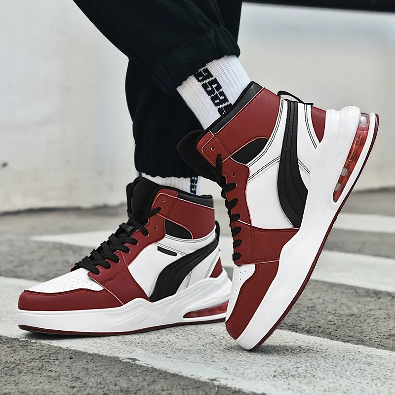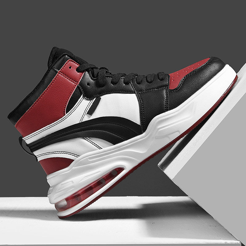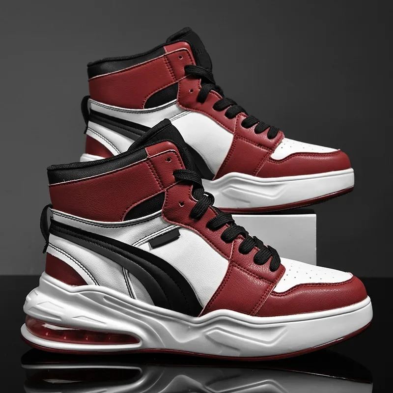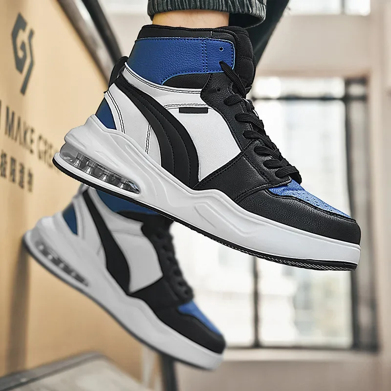 Crafted from genuine leather with bold color-block styling and an air-cushioned sole that softens every step. Designed for streetwear comfort with shock-absorbing support that lasts all day.