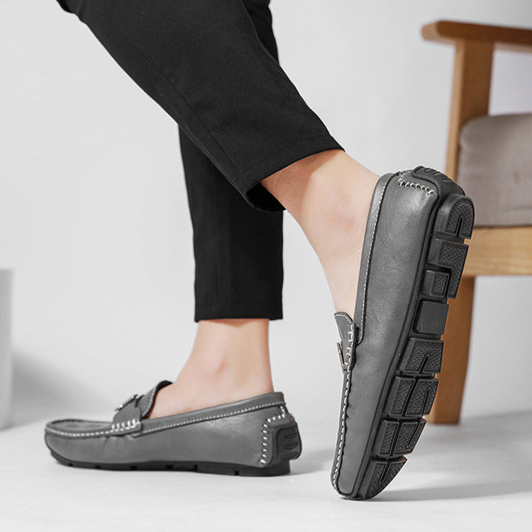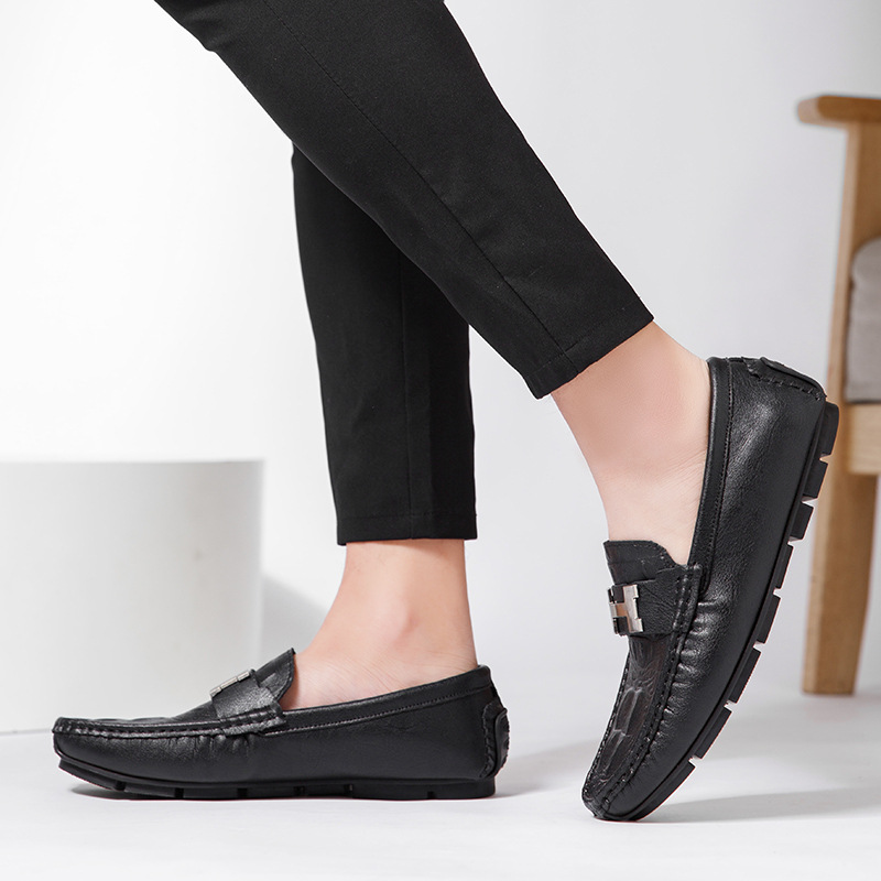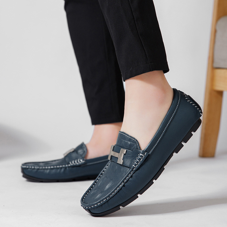 Crafted from genuine leather, these loafers offer lasting comfort and polished sophistication that improves with every wear. Signature metal accents enhance the sleek profile, while a cushioned insole ensures comfort throughout the day.