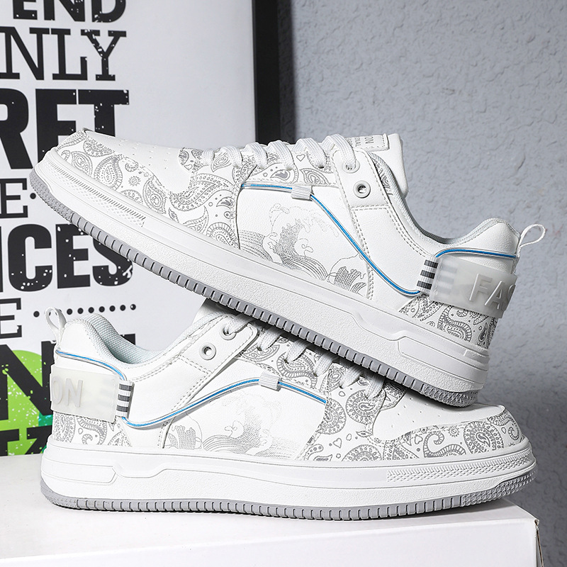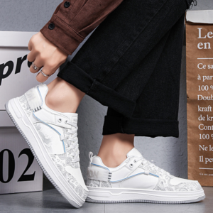 Crafted in genuine leather, these sneakers fuse street-style form with retro-inspired graphics—featuring paisley-printed overlays and fine line illustrations. Finished with a floating lace lock and with soles marked by grooves, this is a statement shoe that adds instant character to your look.