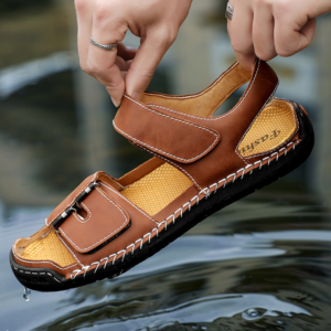 Every step feels easier in these genuine leather sandals built for all-day comfort. Wide, breathable straps and a soft cushioned insole keep your feet relaxed, while the flexible stitched sole gives steady footing wherever the day takes you.