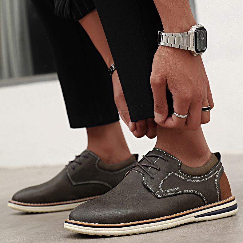 Supple genuine leather and a streamlined Derby silhouette meet a sneaker-inspired sole crafted for movement. With clean lines above and cushioned support below, it delivers refined style made for daily wear—no dress code required.