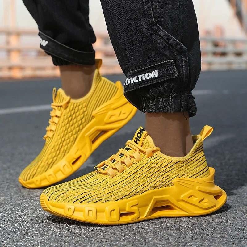 Crafted from breathable knit mesh, these sneakers deliver superior airflow and lightweight comfort that moves with your every stride, sprint, and step.The geometric cutout midsole and sock-like construction create a secure fit that’s built for active days and street-ready style.